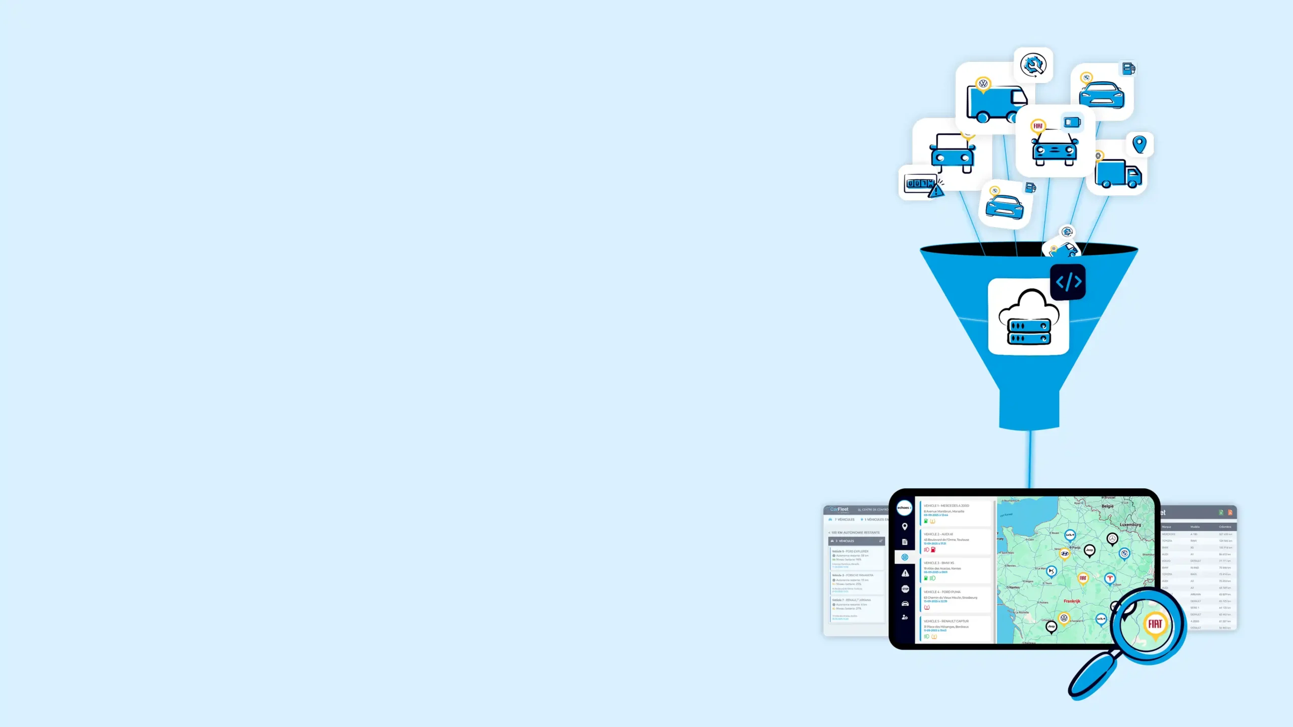 Centralisez les données de vos véhicules et suivez l'ensemble de votre parc en temps réel.